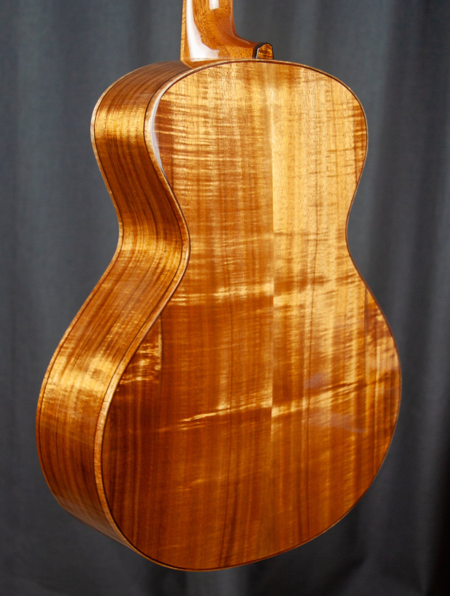 The body is bound in Figured Koa with Bloodwood purfling accents.