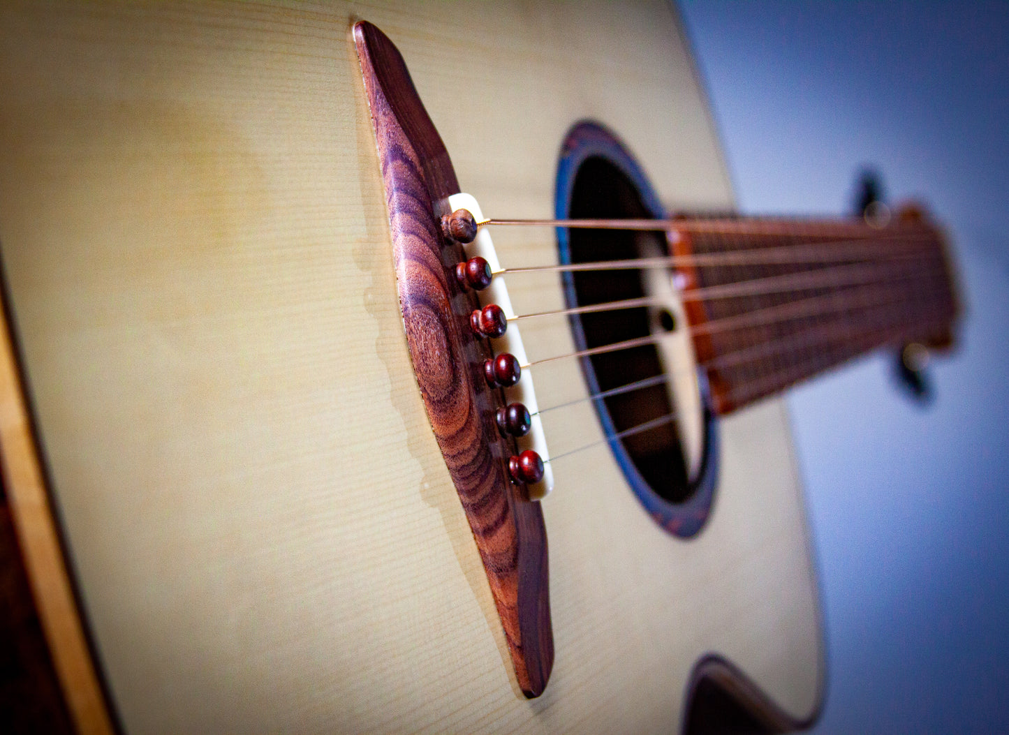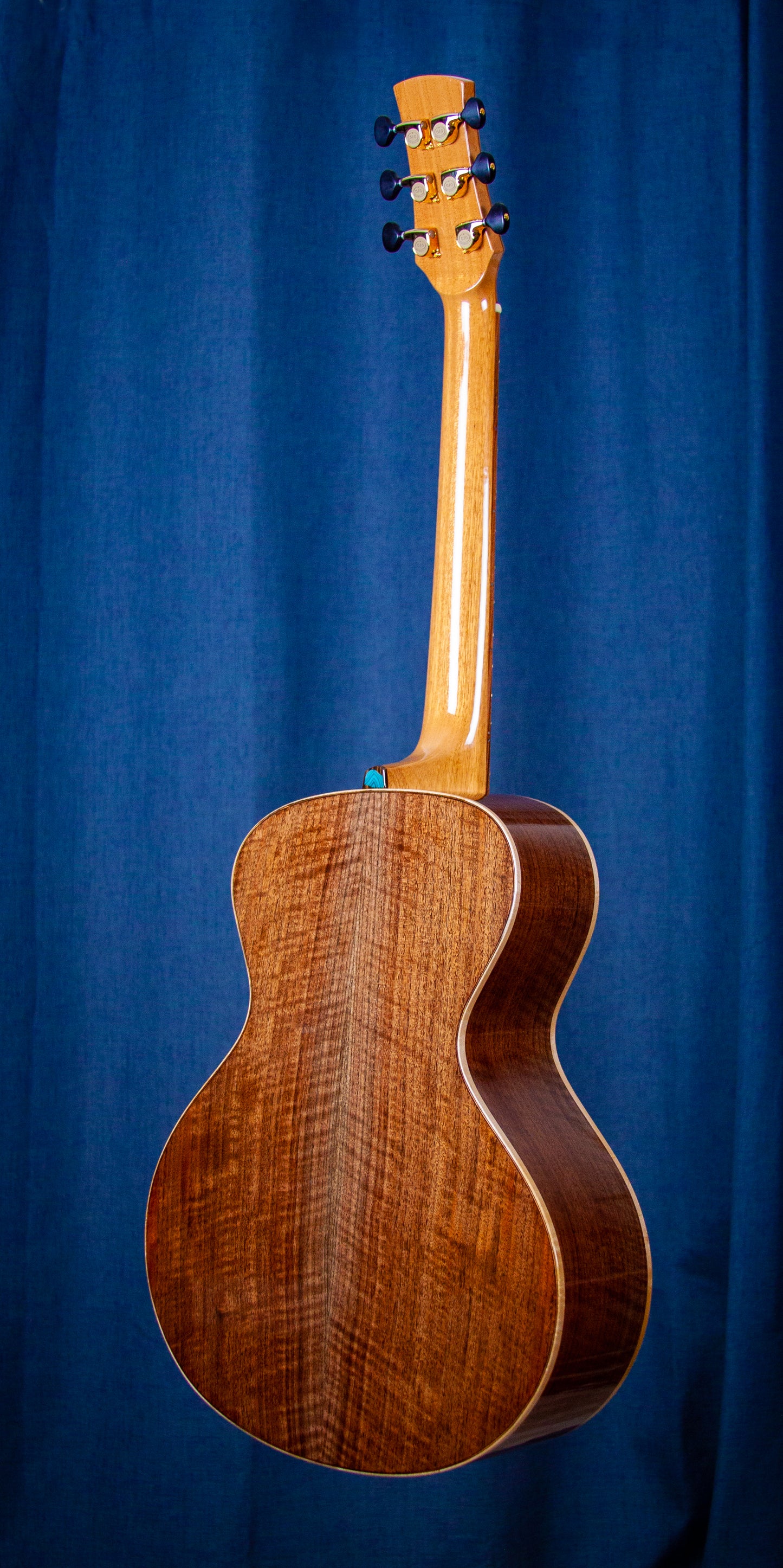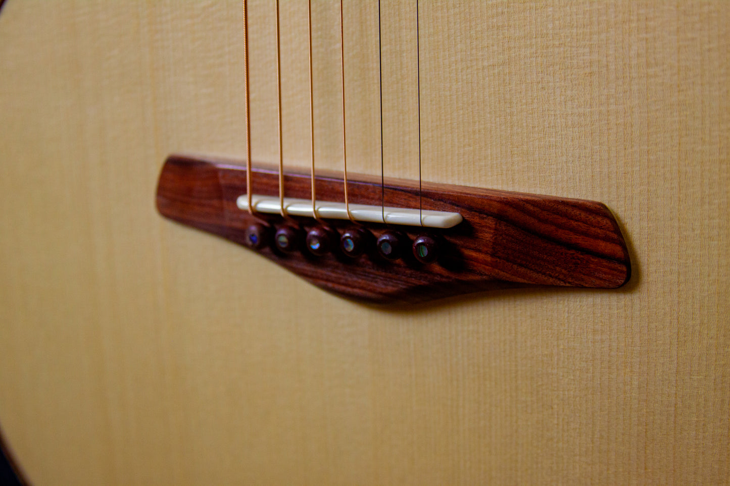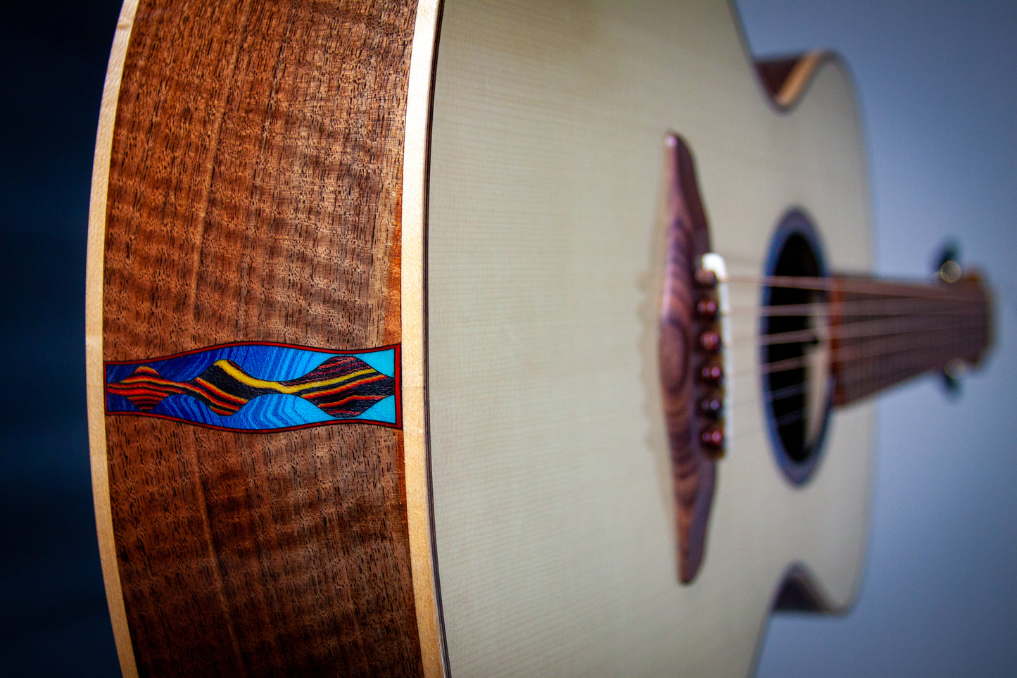 Walnut is a hardwood that creates a beautiful canvas for the Red Spruce top to work its magic for the musician playing the instrument.