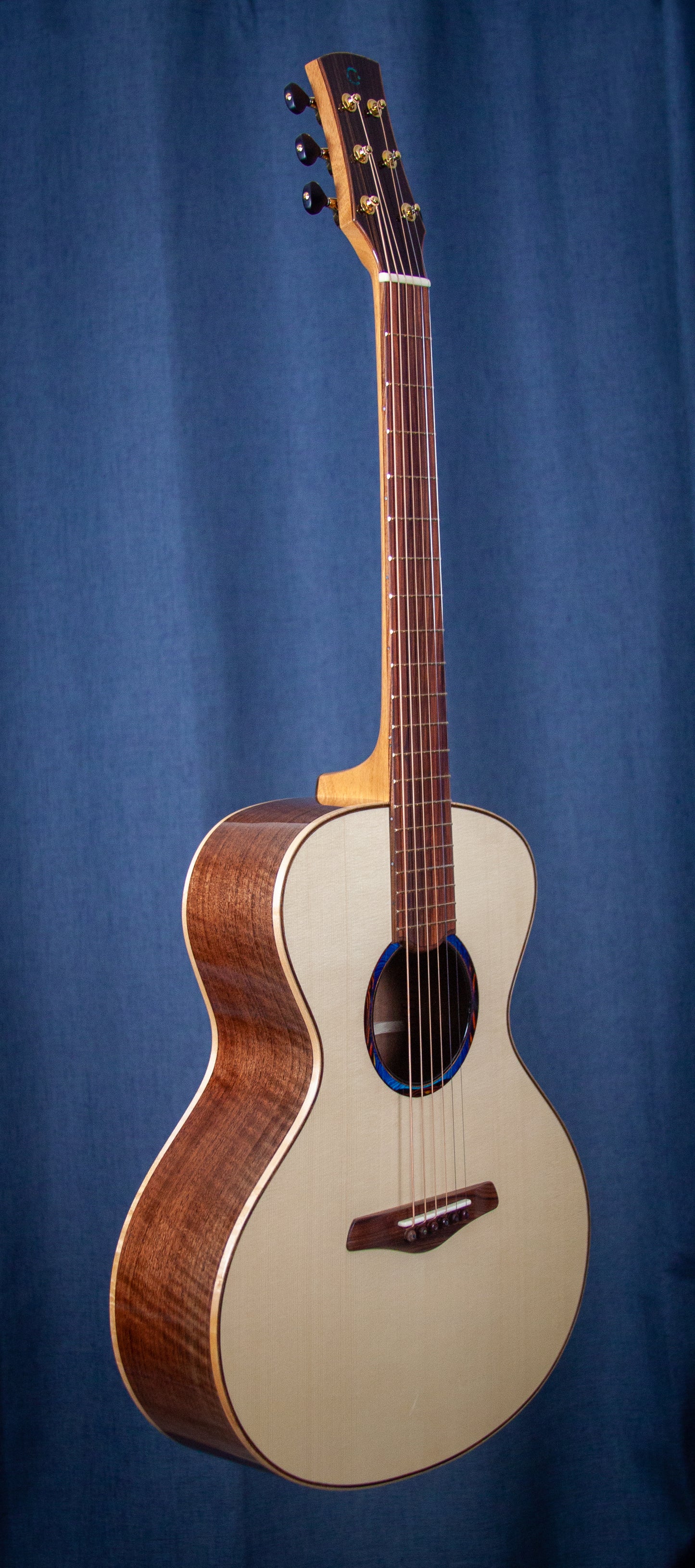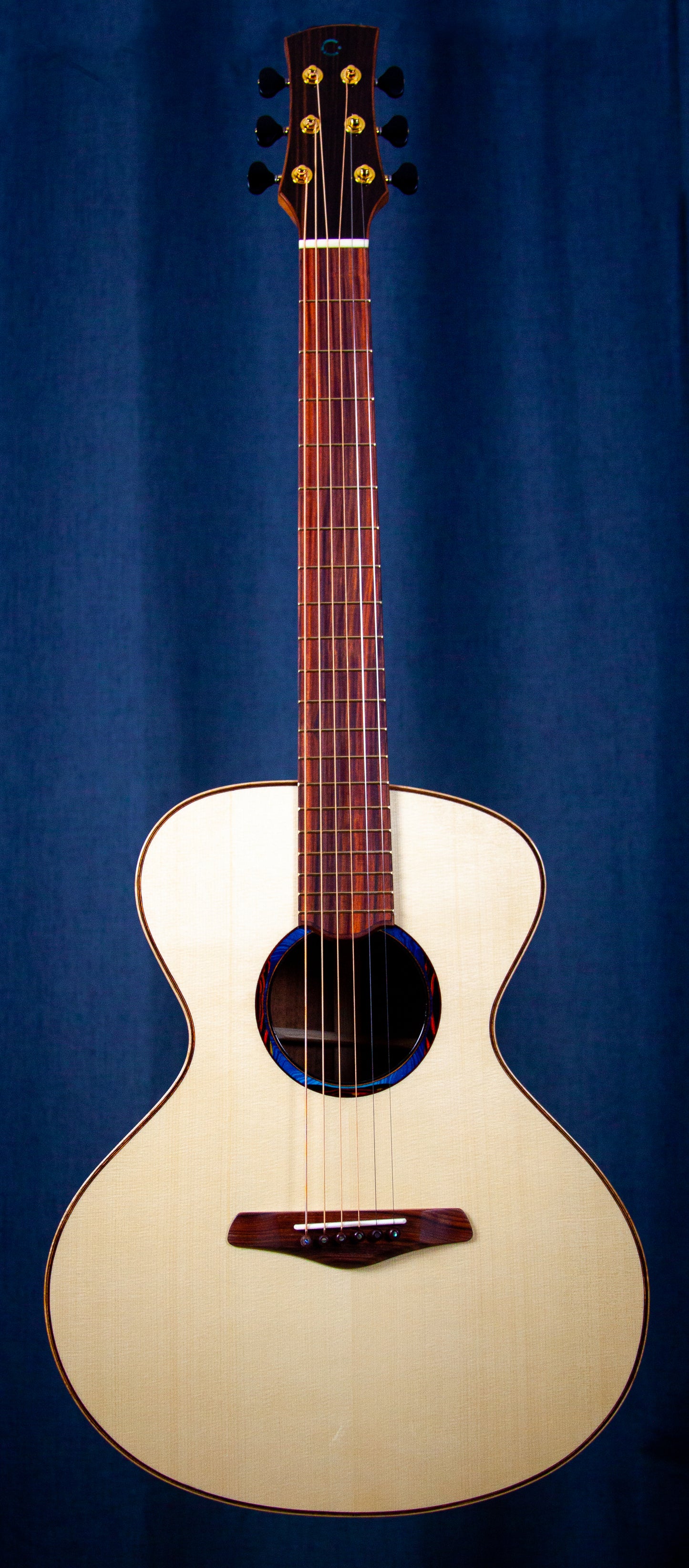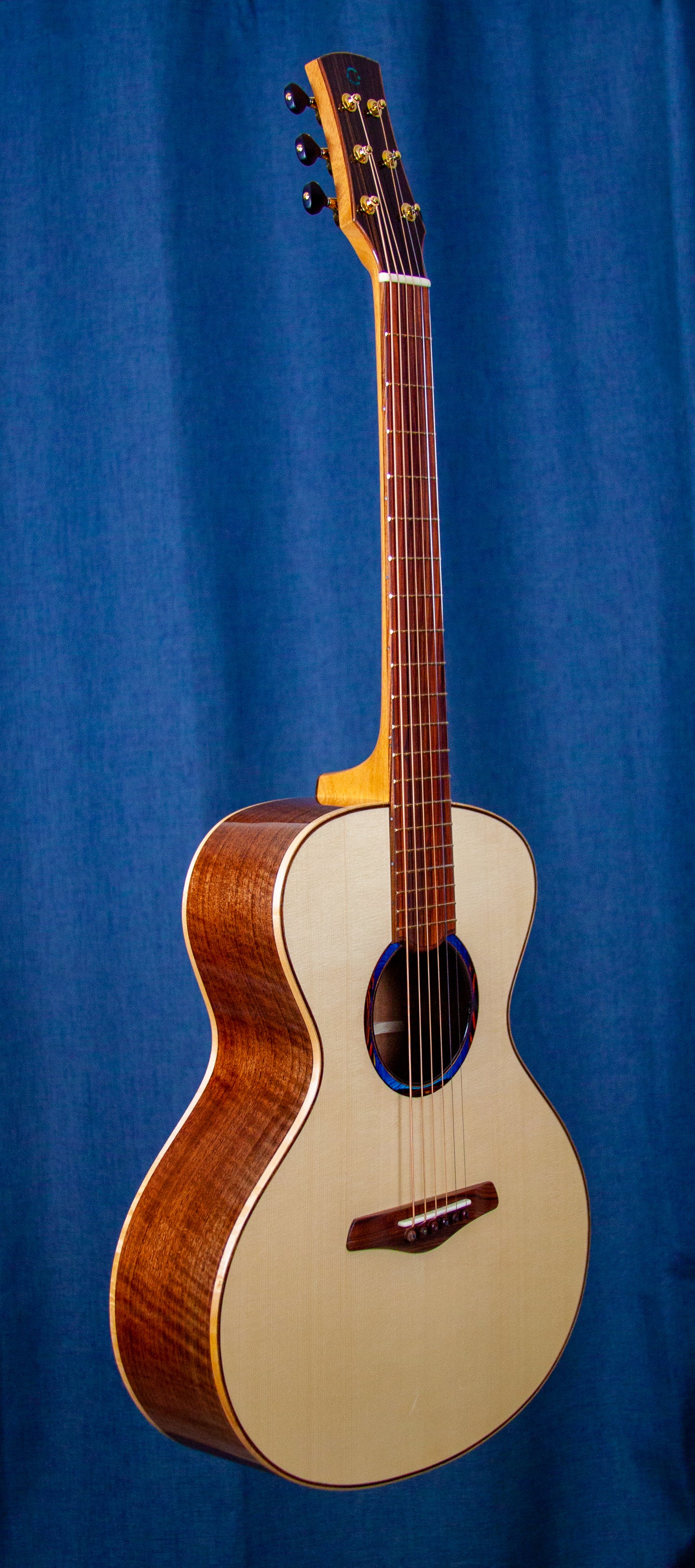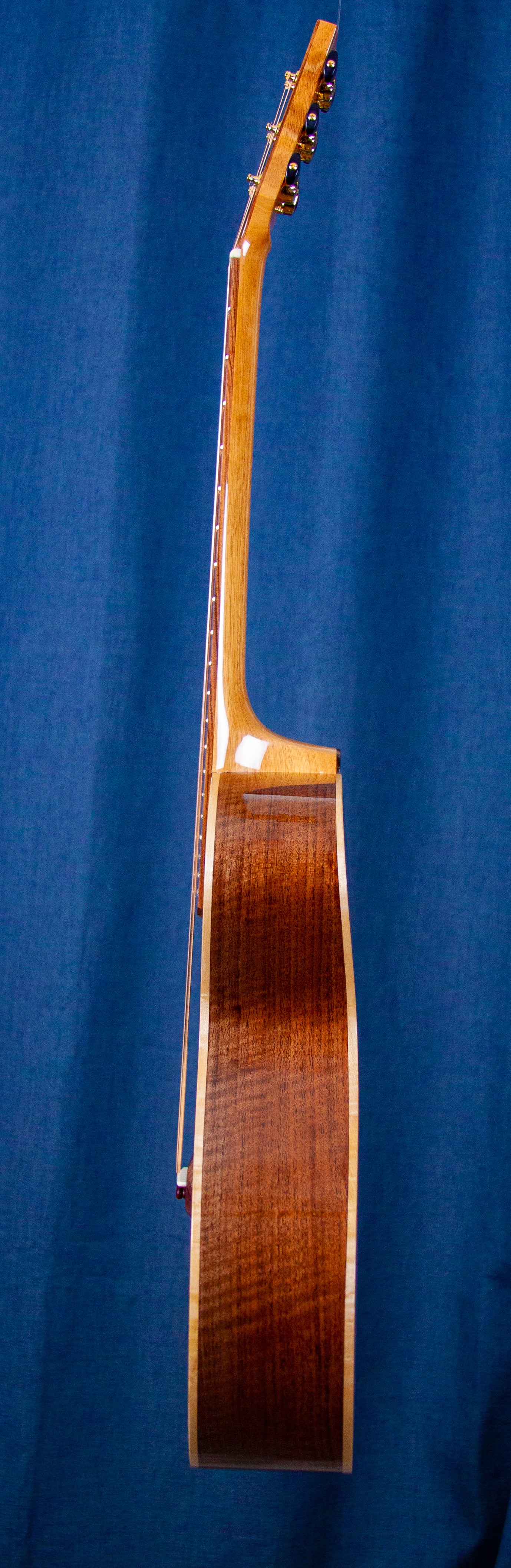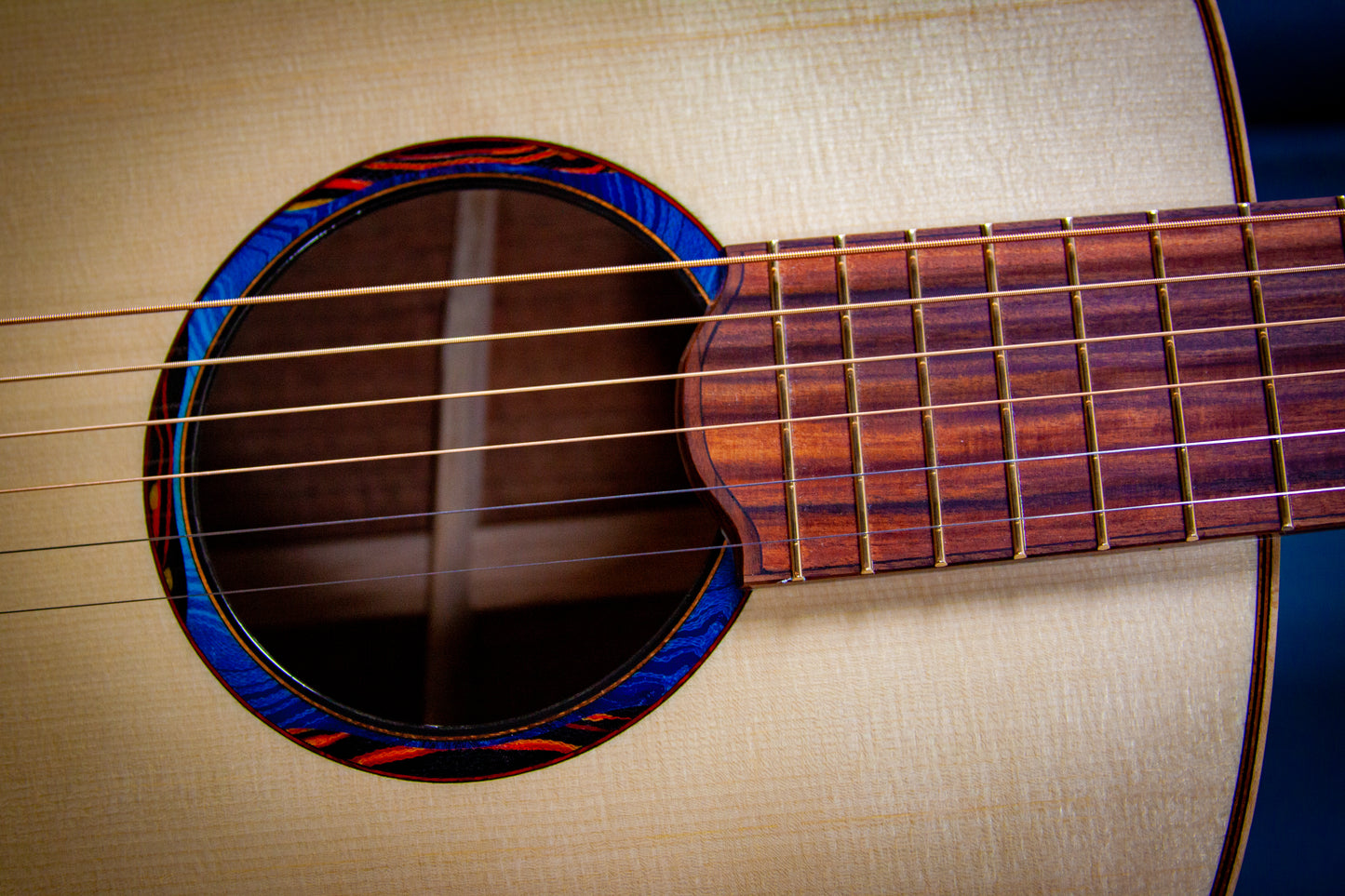 Walnut is a hardwood that creates a beautiful canvas for the Red Spruce top to work its magic for the musician playing the instrument.
